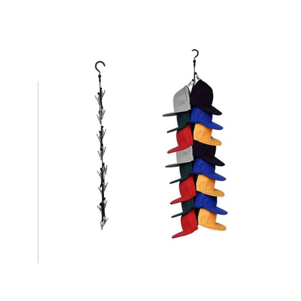 Organizer for Fitted Caps and More, Easy Storage with Durable Nylon Straps, Wall Mount Option, Stainless Steel Clips Protect Your Hats From Creasing,