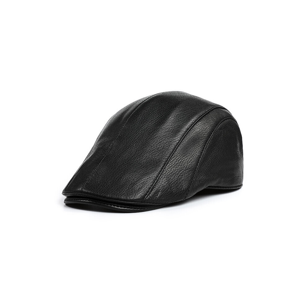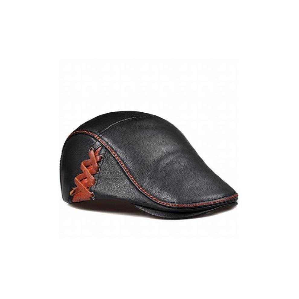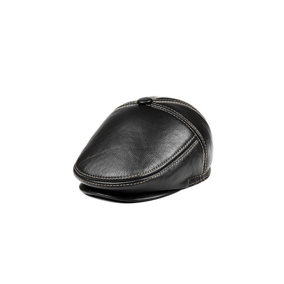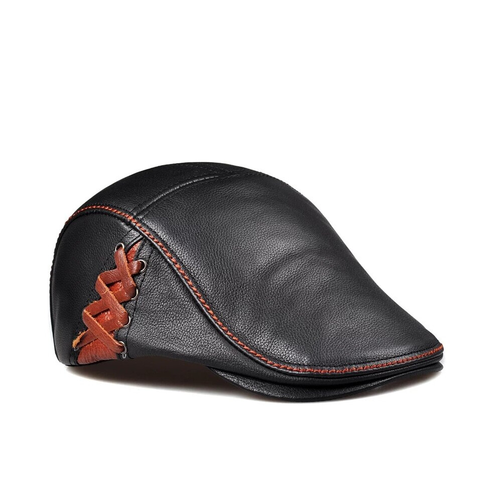 NMCNXSD Leather Cap Winter Men Genuine Leather Hats Unisex Streetwear Fitted Black Caps With Belt Outdoor(L 55 56cm)