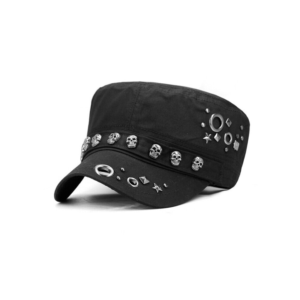 Punk Rock Skull Rivet Flat Peaked Hats for Women Men Fitted Baseball Caps Outdoor Casual Travel Military Cap