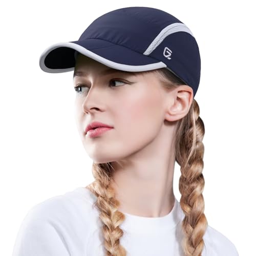 GADIEMKENSD Women's Foldable Light Cap Quick Dry Ultra-Thin Unstructured Tech Running Hat Reflective UPF 50+ Baseball Caps Cooling Ponytail Hats Fitted for Beach Tennis Travel Hiking Golf Navy Blue