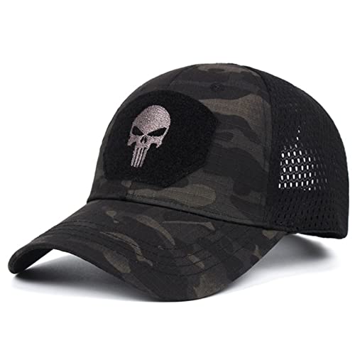 HANERREAL Skull Mesh Baseball Cap Men Tactical Operator Caps Fitted Outdoor Breath Hats, Black Camouflage, One Size