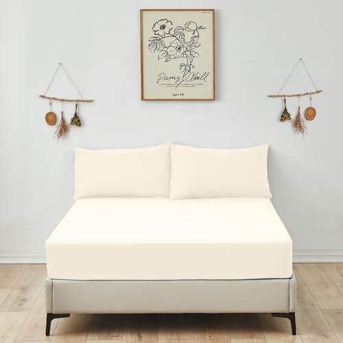 AmigoZone (Cream, 4FT Small Double) Deep25cm Fitted Sheets Bed & Pillow Cases