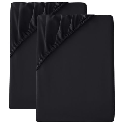 2 Pack Small Double Fitted Sheet (30cm) - 4ft Ultra Soft Microfibre Bed Sheets, Breathable, Shrink and Fade Resistant, Easy Care for Small Double Beds (Small Double/4ft, Black)