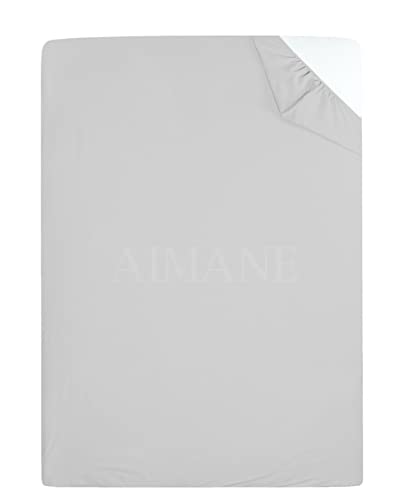 AIMANE® Non Iron Percale 4FT Small Double Fitted Sheet Poly Cotton Easy Care Non Iron Percale 4FT Fitted Bed Sheets Small Double (Light Grey)