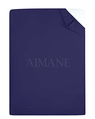 AIMANE® Non Iron Percale 4FT Small Double Fitted Sheet Poly Cotton Easy Care Non Iron Percale 4FT Fitted Bed Sheets Small Double (Navy)