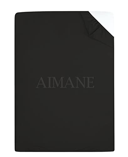 AIMANE® Non Iron Percale 4FT Small Double Fitted Sheet Poly Cotton Easy Care Non Iron Percale 4FT Fitted Bed Sheets Small Double (Black)