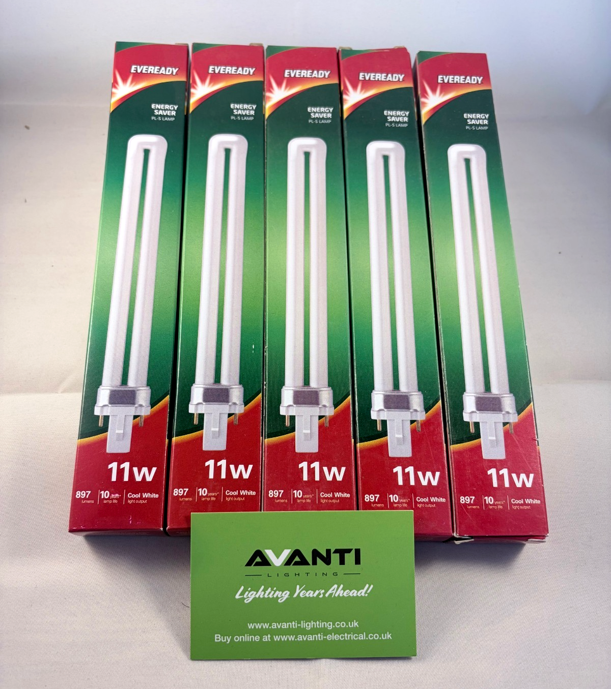 FIVE Eveready 11w 2 Pin G23 PL-S Energy Saver Bulbs - 4K - 10000 Hours - 897lm