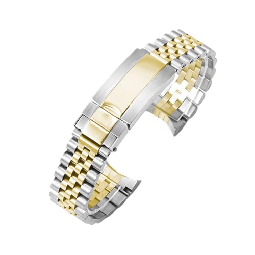 ROUREOX Universal Metal Band Five Link Replacement Wrist Bracelet Stainless Steel Strap Double Lock Clasp for Rolex Oyster Perpetual Datejust - Silver + Gold 21mm