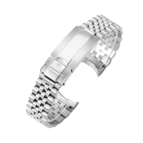 ROUREOX Universal Metal Band Five Link Replacement Wrist Bracelet Stainless Steel Strap Double Lock Clasp for Rolex Oyster Perpetual Datejust - Silvery 20mm