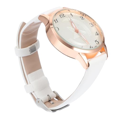 SHOWERORO Women’S Leather Strap Wristwatch Thin Band Five-Pointed Star Dial Casual Business Watch White Design