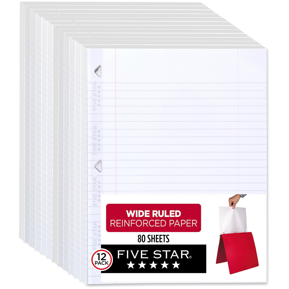 Five Star Loose Leaf Paper 12 Pack Notebook Paper Wide Ruled Filler Paper Reinforced 8 x 10.5 80 Sheets per Pack (150026-ECM) White