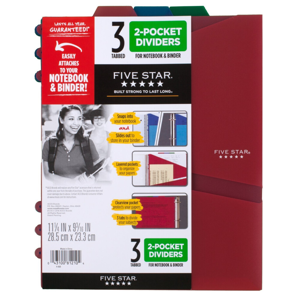 Five Star 2-Pocket Dividers Tabbed Colors Will Vary 3 Pack (81210)