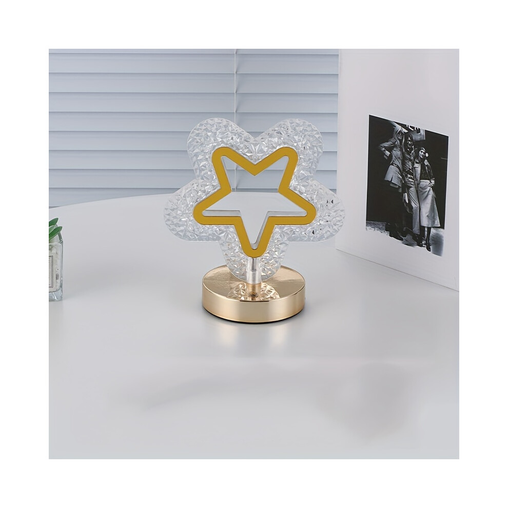 (Rechargeable Three-color Light-changing Five-pointed Star) 1pc Rechargeable Crystal Table Lamp with Touch Control, Eye Protection