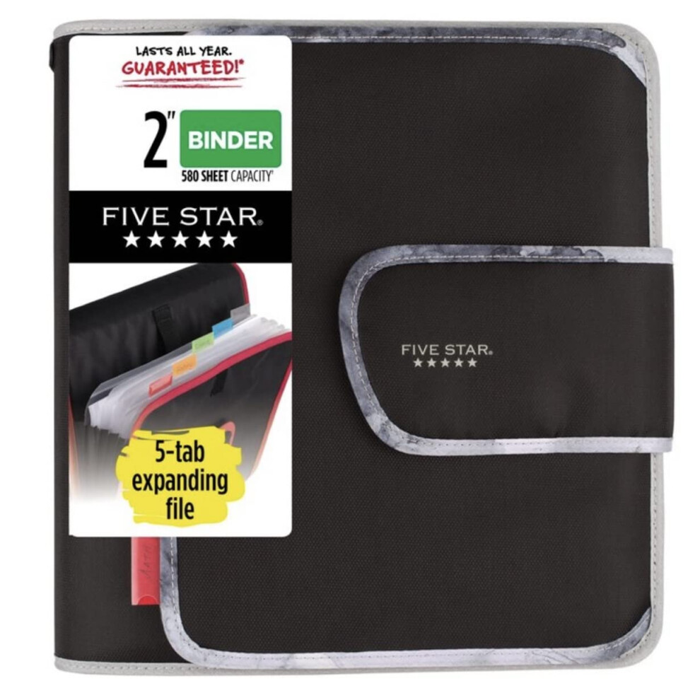 Five Star 2 Inch Zipper Binder 3 Ring Binder 6-Pocket Expanding File Durable Color Selected for You 1 Count (29592)