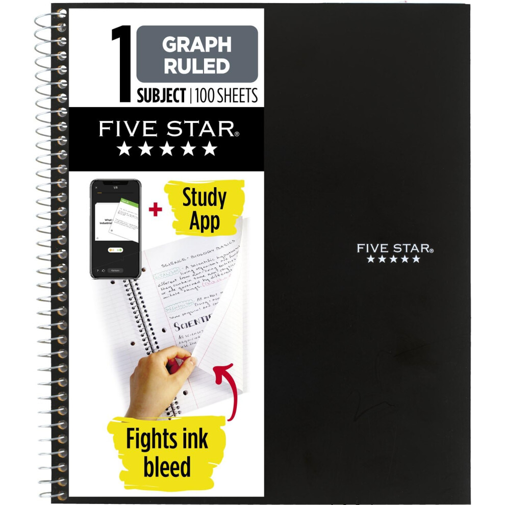 Five Star Spiral Notebook + Study App 1 Subject Graph Ruled Paper F