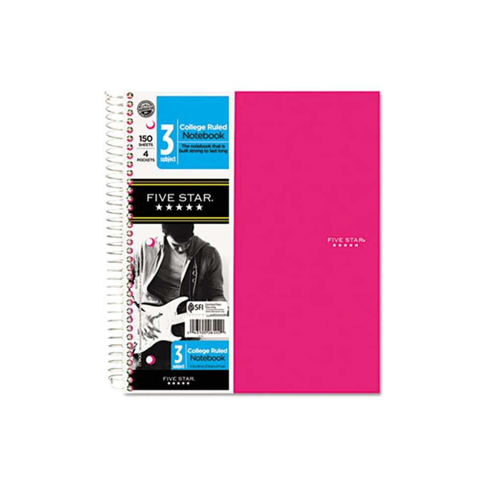 Five Star Spiral Notebook + Study App 3 Subject College Ruled Paper Fights Ink Bleed Water Resistant Cover 8-1/2"" x 11"" 150 Sheets