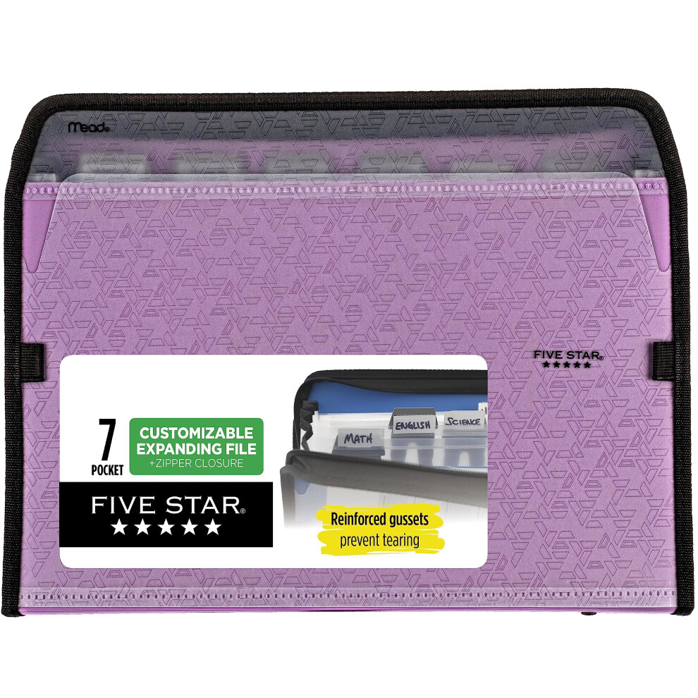 Five Star 7 Pocket Expanding File Organizer Plastic Expandable File Folders with Customizable Tabs & Clear Cover Holds 11"" x 8-1/2"" Zip