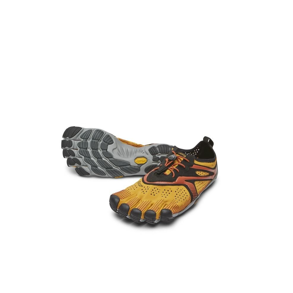 (46 EU, Golden Yellow/Black) Vibram V-Run Men's Mega Grip Five Fingers Barefoot Training Running Shoes-Golden
