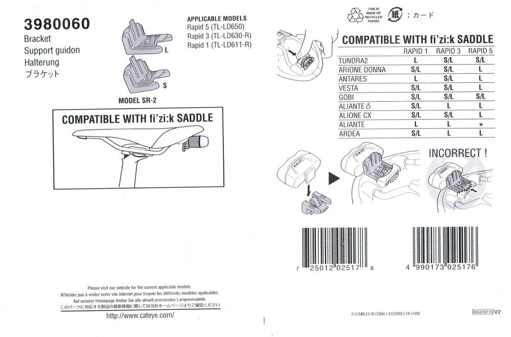 CATEYE REAR LIGHT LED FITTING BRACKET FOR FIZIK SADDLES SR2 LONG CLIP