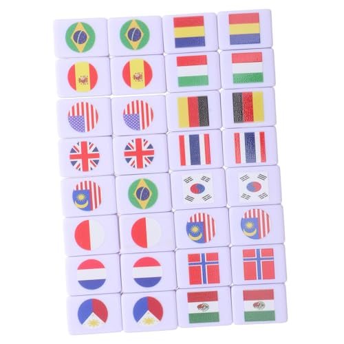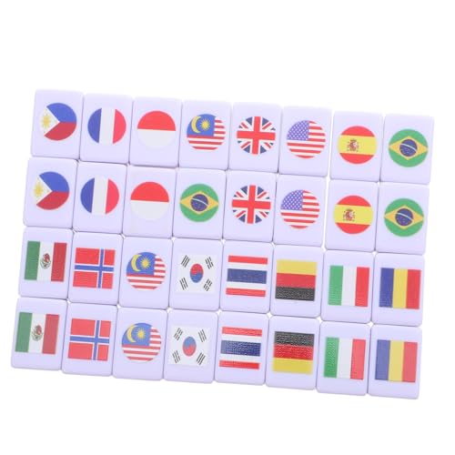 CORHAD 64pcs National Flag Mahjong Board Game Family Tile Player Tile Flags Learning Game