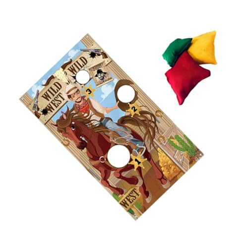 LALADEFIEE Western Party Throwing Sandbags Game Flag and 3 Random Colour Sandbags, Toddler and Teens Outdoor Party Toy for Wild West Themed Games and Activities