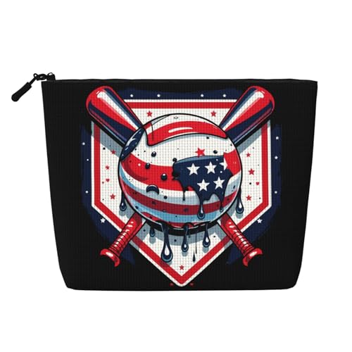 Baseball Drip Ice Cream American Flag Game Day Fake Hemp Makeup Bag Travel Bag Pouch Toiletry Bag Environmentally Friendly and Durable with Zipper 9.45 X 6.7In