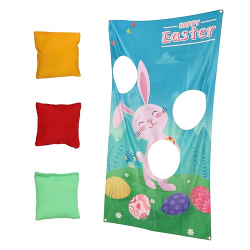 TOGEVAL Easter Toss Game Flag Random Color Sandbag Set – Bunny Sandbag Toss for Easter Party Outdoor Fun Random Color