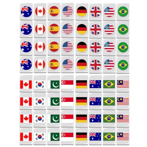 Parliky 65pcs National Flag Mahjong Tiles Game with Plastic Stickers Educational Country Flags Collection for Family Fun Travel and Casual Leisure Entertainment
