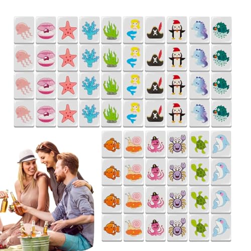 Seaside Game Mahjong Sets, Flag Pattern Game Blocks Tiles 65 Tiles SeasideEscape Board Games, Mahjong Set, Animal & Food Pattern Mahjong Game, Beachside Board Games
