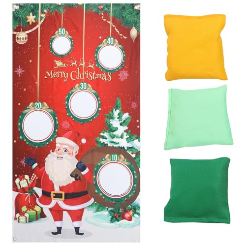 ibasenice Christmas Santa Claus Sandbag Toss Game Flag Set 3 Random Color Sandbags Xmas Party Outdoor Indoor Game Banner Random Color