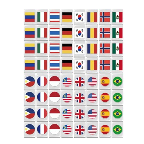 Hohopeti 65pcs Flag Mahjong Tile Game International Country Flags Design for Family Fun Party and Travel Stickers
