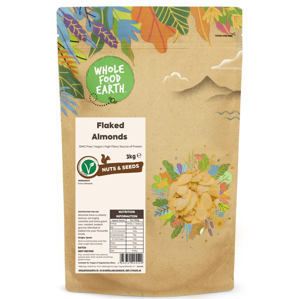 Whole Food Earth? - Flaked Almonds 3 kg | GMO Free | High Fibre | Source of Protein