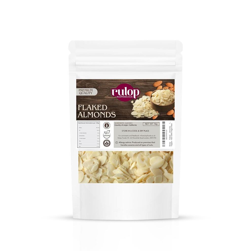 Rulop Flaked Almonds 1kg - 100% Natural Raw Sliced Blanched Almond Flakes 1 kg - Large Bulk Bag Premium Quality Blanch Almond Slices Slice Nut ? Ideal
