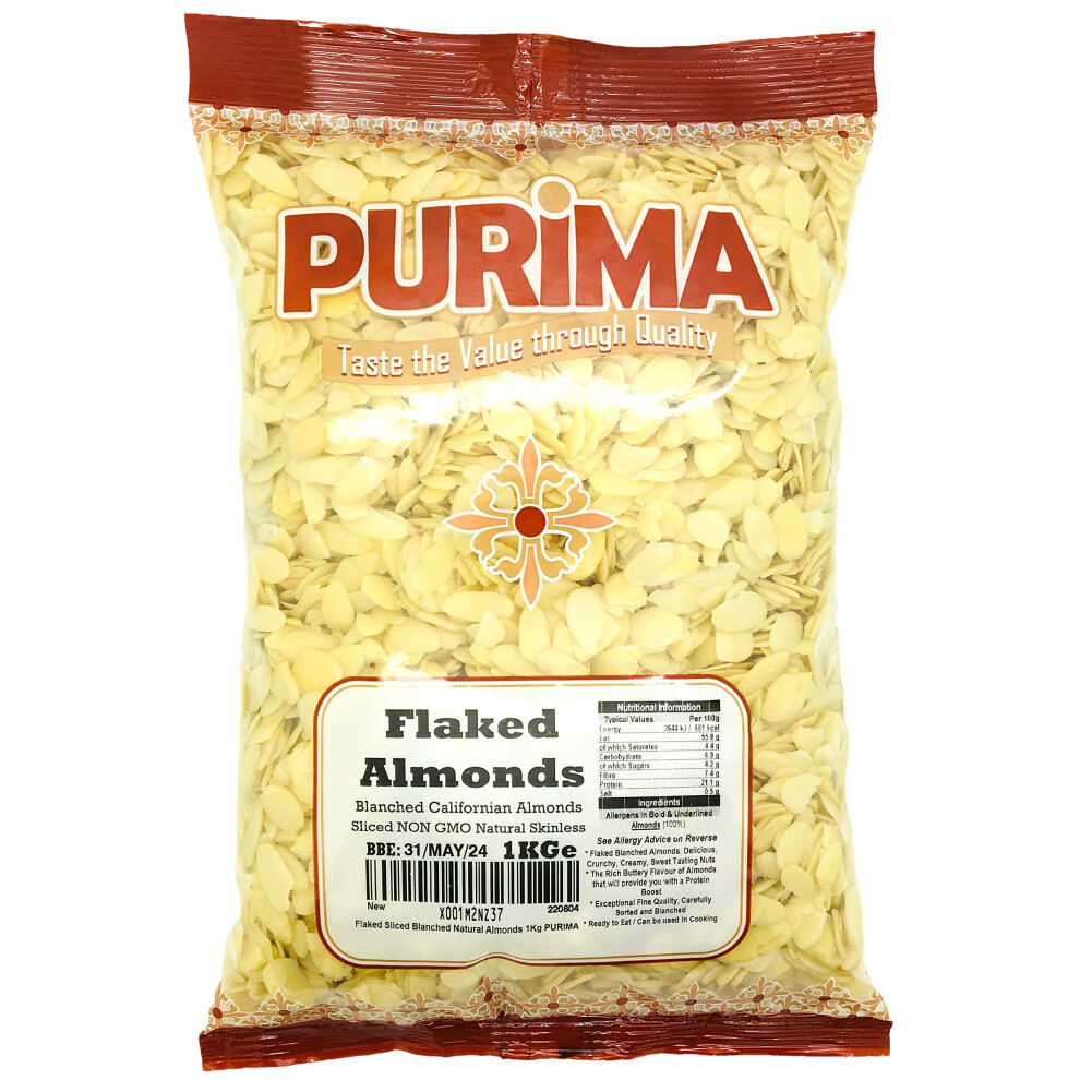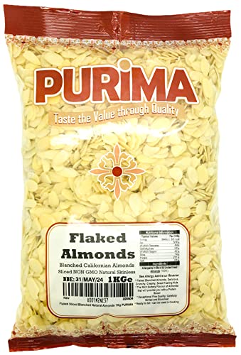 Flaked Almonds 1kg - 100% Natural Raw Sliced Blanched Almond Flakes 1 kg - Large Bulk Bag Premium Quality Blanch Almond Slices Slice Nut – Ideal for Baking Cakes Cereal Topper - Non GMO Vegan - PURIMA