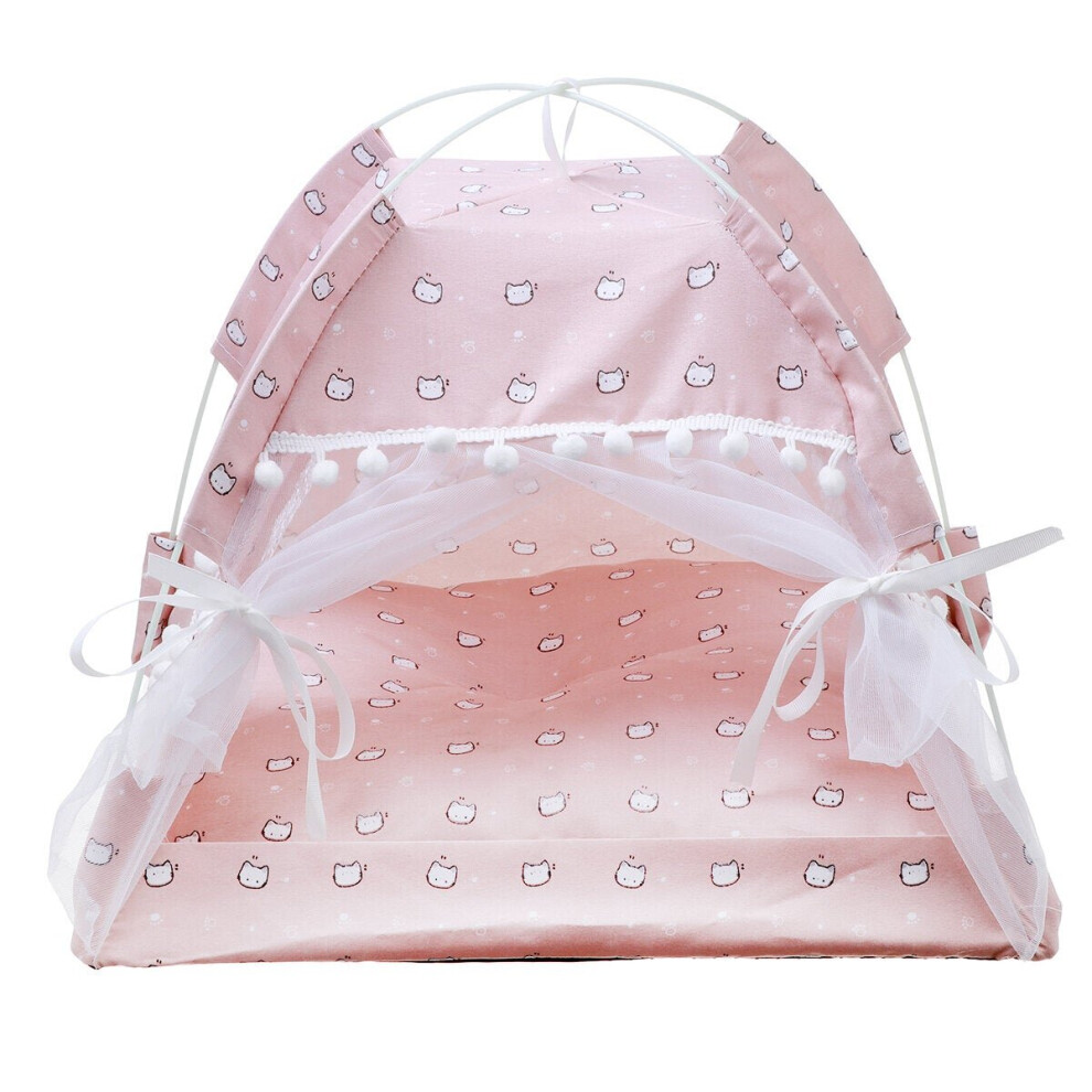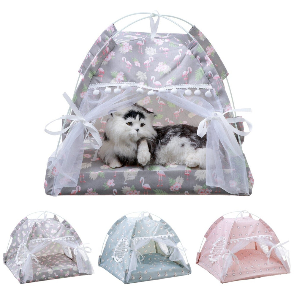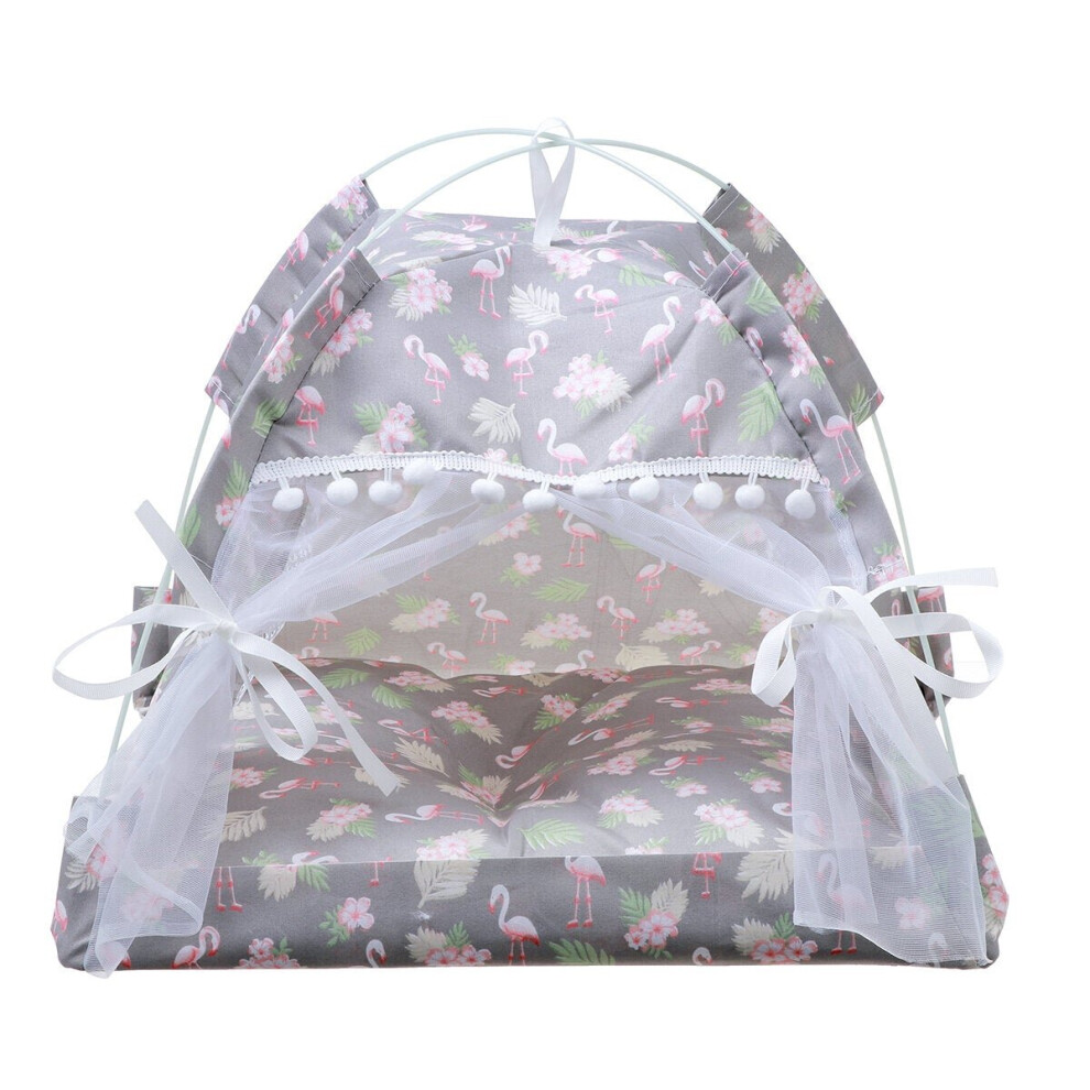 (S, C) Pet Tent Cat Bed Puppy House Cushion Pad Bed Flamingo Pattern Indo