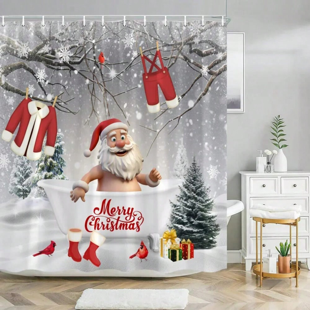 (7687AH, 35x70in-90x180cm) Funny Christmas Animals Shower Curtain Cute Puppy Dinosaur With Christmas Hat Flamingo Fabric Home Bath Curtains Bathroom D