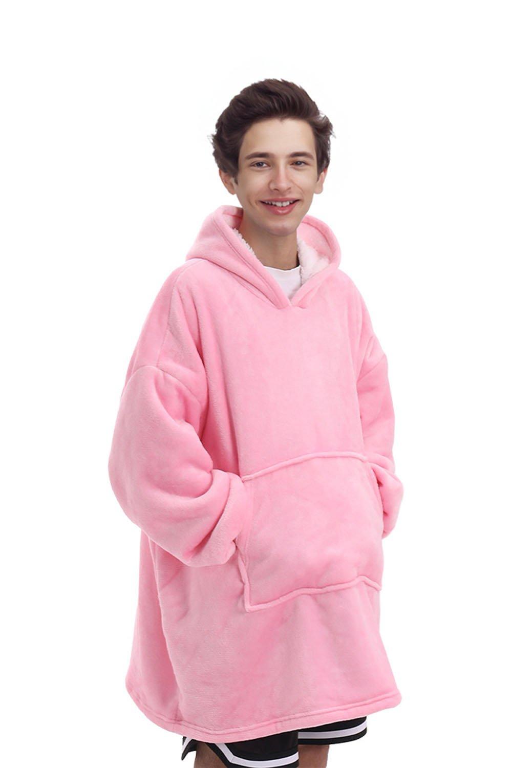 Sherpa Pink Flannel Oversized Hoodie Blanket