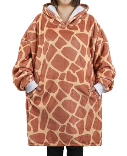 Giraffe Gifts for Giraffe Lovers, Wearable Flannel Blanket Hoodie with Two Large Pocket - Pattern