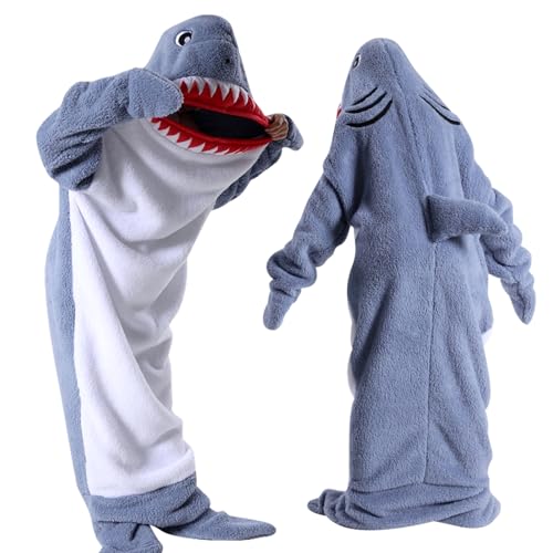 DAJASD Shark Blanket Onesie for Adults & Kids - Cozy Flannel Wearable Hoodie, Sleeping Bag With Hood, Cosplay Costume Gift for Friends Family Shark Lovers - S