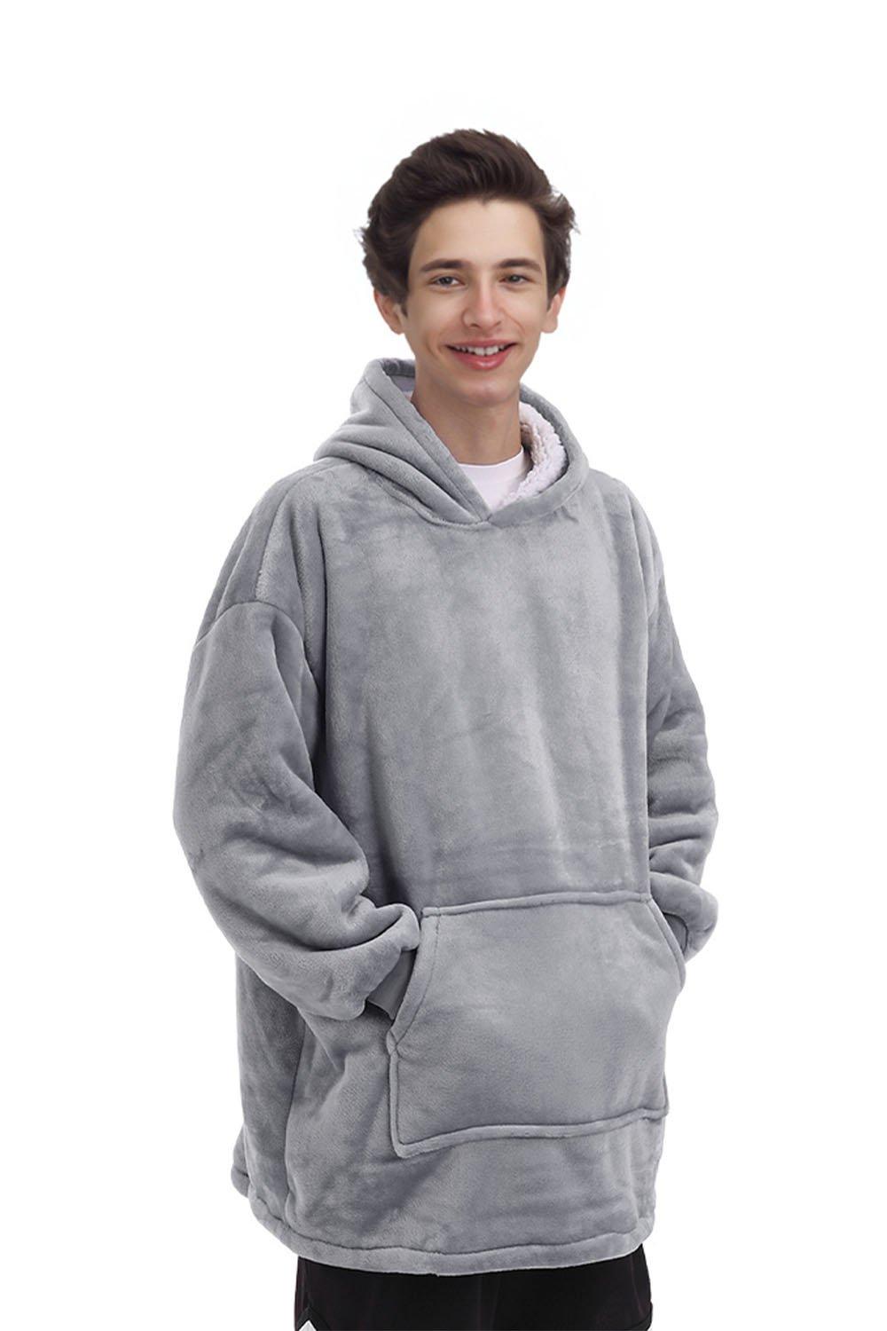 Sherpa Grey Flannel Oversized Hoodie Blanket