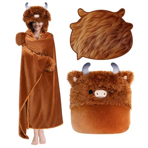 Mewaii Oversized Wearable Blanket Hoodie – Kawaii Highland Cow Hooded Cloak, Soft Plush Flannel Blanket Hoodie, Unisex Cozy Blanket as Birthday Gifts for Women Girls (51.2"x62.2")