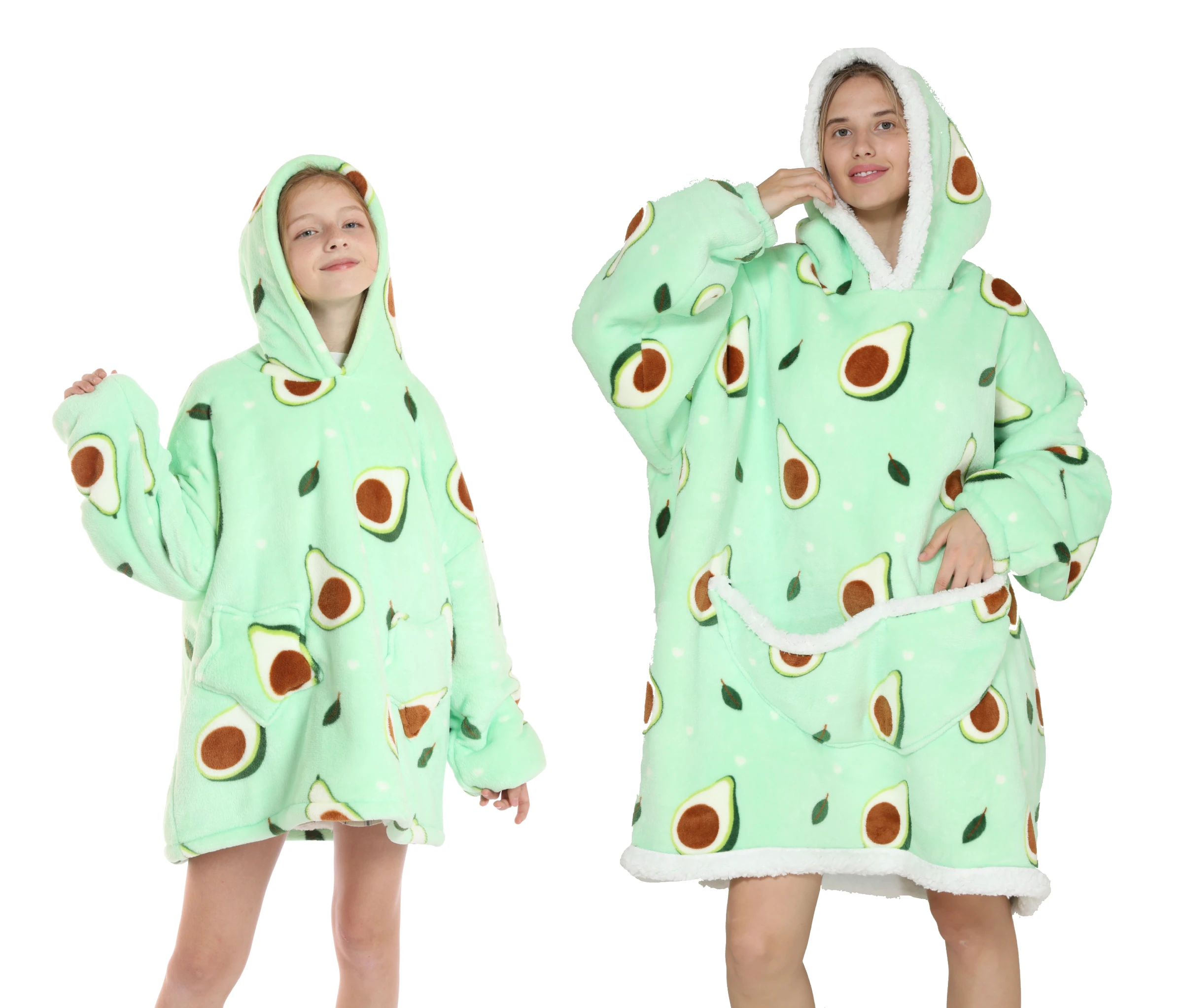 Oversized Wearable Hoodie Warm Flannel Sherpa Blanket Hoodie for Winter Men Women Pullover TV Sweatshirt
