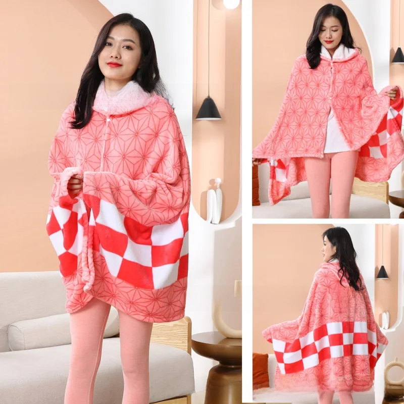 demon slayer blanket Cloak Kimetsu No Yaiba Cloak Cape Winter Warm Fleece Flannel Cosplay Costume Hoodie Christma