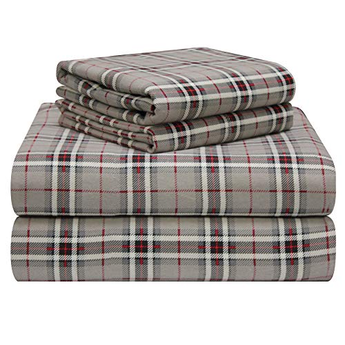 Eddie Bauer | Elk Grove Collection | 100% Cotton Flannel Sheet, 4-Piece Bedding Set, Pre-Shrunk and Brushed for Ultra Soft and Cozy Feel, Queen, Grey