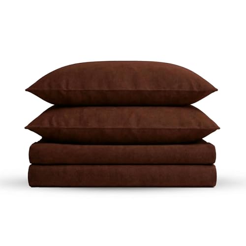 Tribeca Living Twin Luxury Solid Flannel Deep Pocket Sheet Set, Chocolate