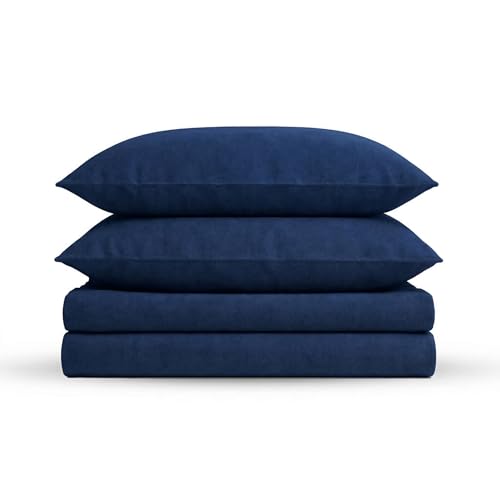 Tribeca Living Luxury Solid Flannel Deep Pocket Sheet Set, Dark Blue, King