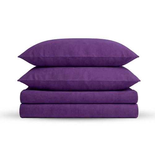 Tribeca Living Twin Luxury Solid Flannel Deep Pocket Sheet Set, Dark Purple