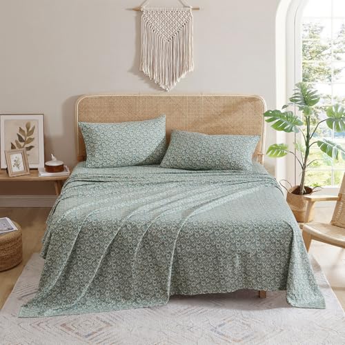 Flannel Sheets Full Size Bed Set - Soft & Comfy Deep Pocket Cotton Flannel Bedding, Fitted Up to 16", Double Brushed Full Bed Sheets, 4 Pieces, Moss