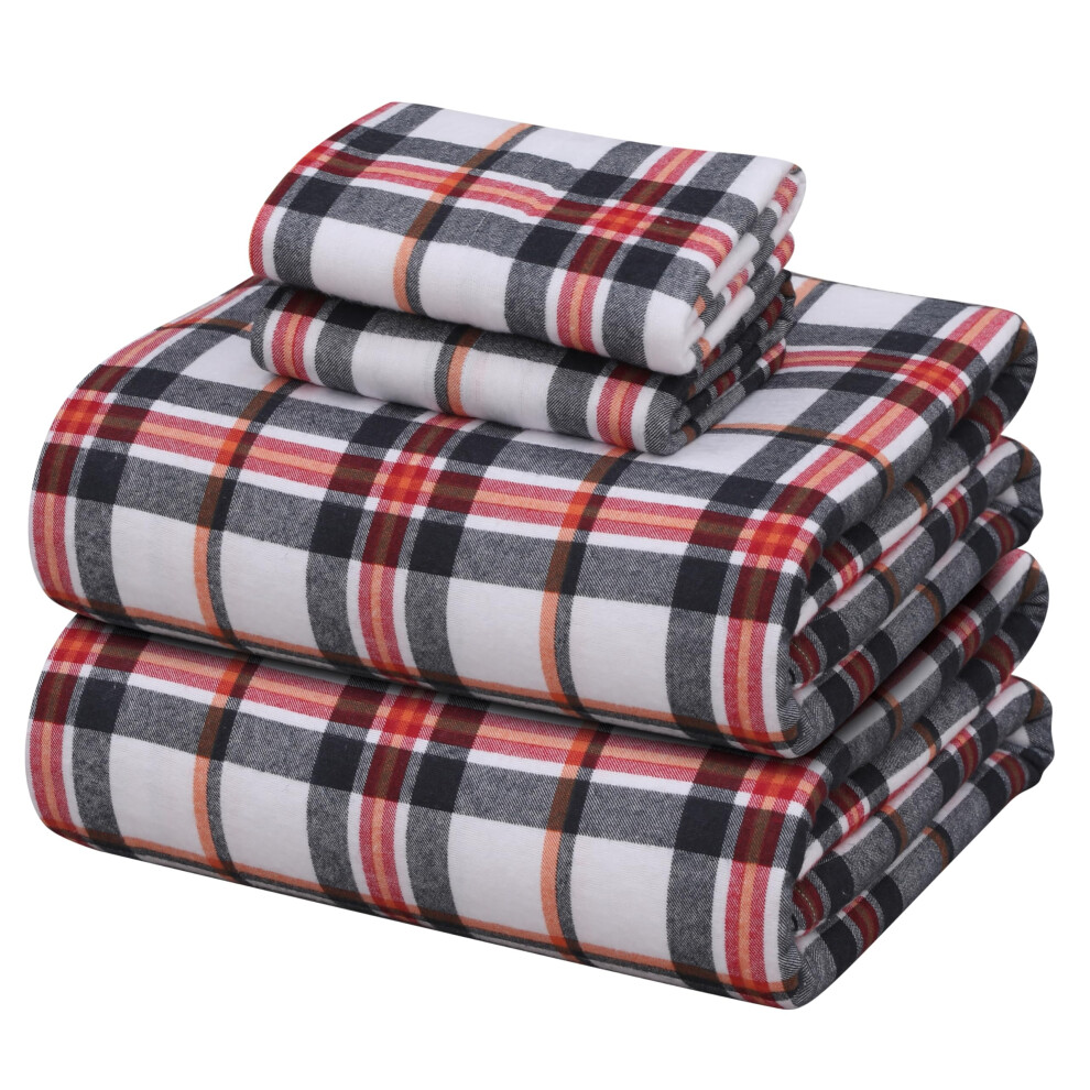 Great Bay Home 4 Piece 100% Turkish Cotton Queen Holiday Flannel Sheet Set | Cotton Christmas Bedding Sheets & Pillowcases | Warm, Double-Brushed Bed Sheets (Queen, Checkered Moose)