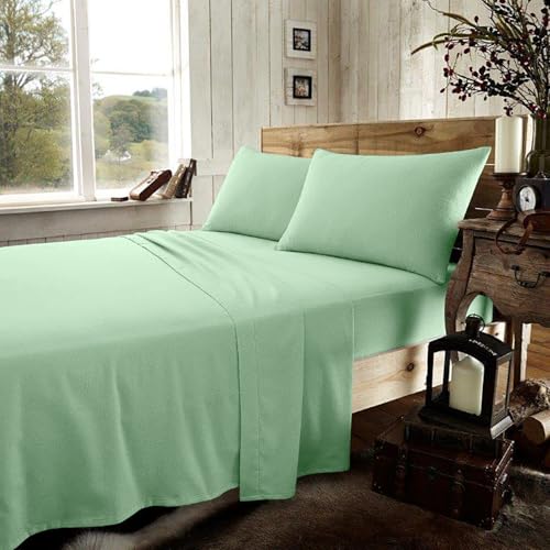 GC GAVENO CAVAILIA Flannel Plain King Size Fitted Sheet- 100% Brushed Cotton Bedding Flat Sheets For Bedroom - Flannelette Sheets with Cotton Pillowcases - Sage Green